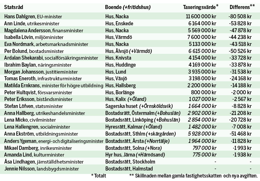 Om den minister som har den dyraste fastigheten, Hans Dahlgren (S), skulle betalat den gamla fastighetsskatten skulle han betala 80 000 kronor mer per år än han gör i dag för sitt Nackahus.