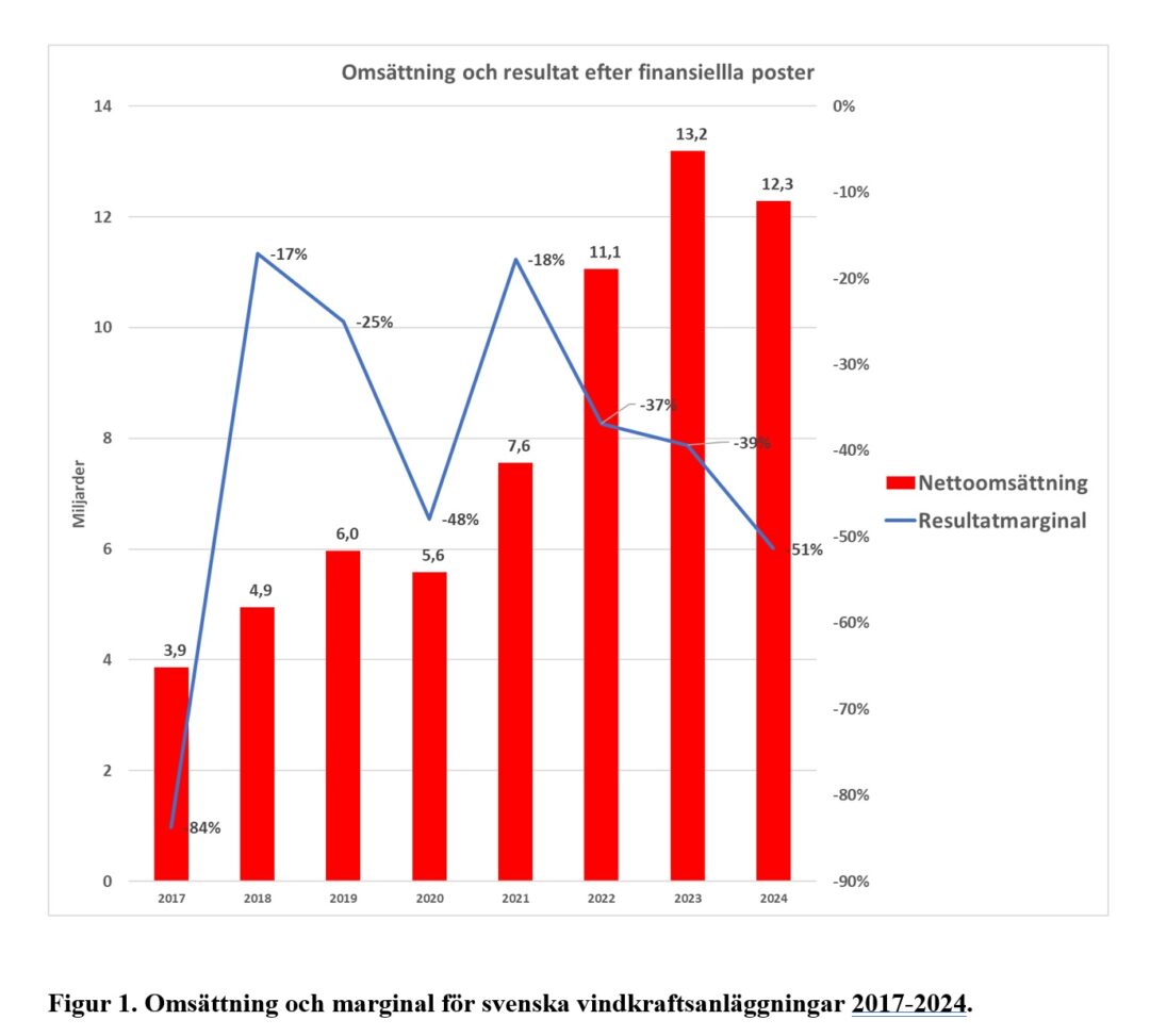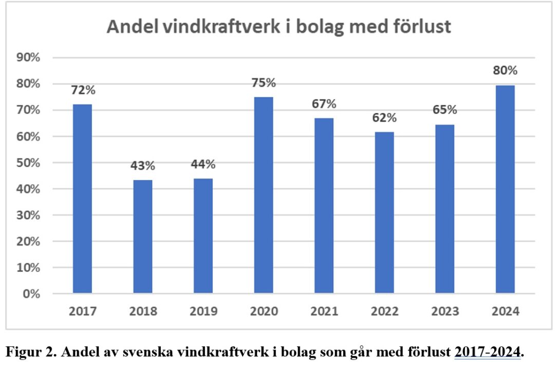 Docenten Christian Sandström, skribent i Affärsvärlden, och företagsekonomen Christian Steinbeck har gått igenom 240 årsredovisningar från vindkraftsbolag. Tillsammans står de för 85 procent av produktionen av vindel. I genomgången, som presenterades på tisdagen i Ekonomiskt Forum, redovisade de 240 bolagen ett samlat resultat på minus 6,3 miljarder kronor för 2024.