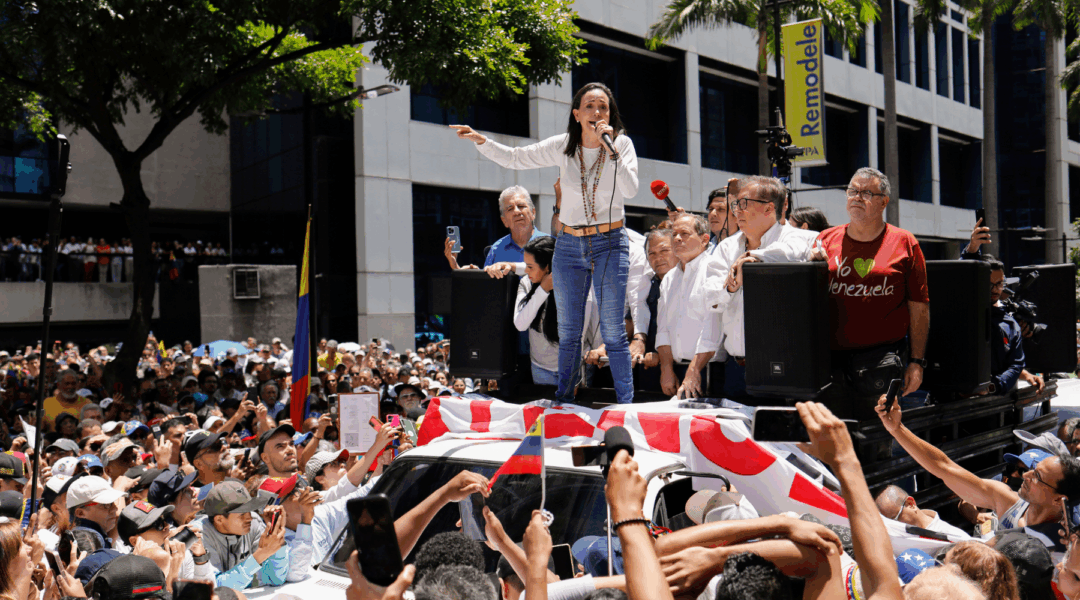 Toppbild: Donald Trump vill inte att oppositionsledaren och Nobelpristagaren Maria Corina Machado tar över makten i Venezuela. Här leder hon en protest i Caracas mot omvalet av president Nicolás Maduro i augusti 2024.