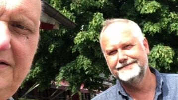 En selfie som Göran Greider lägger ut efter ett möte meds tidigare V-ledaren Jonas Sjöstedt, på hembesök i Sverige, avslöjar att han nu anlägger skägg.