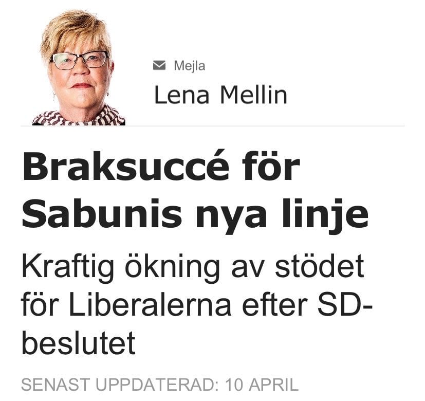 ”I undersökningen svarar närmare 4 av 10 M-väljare att de skulle kunna tänka sig att stödrösta på Liberalerna för att öka sannolikheten för att det ska gå att bilda en borgerlig regering efter nästa val. Det är ett besked som dessutom måste ses mot bakgrund av den tradition av taktikröstande, på KD och L, som redan är etablerad bland moderata väljare”, skrev Smedjan.