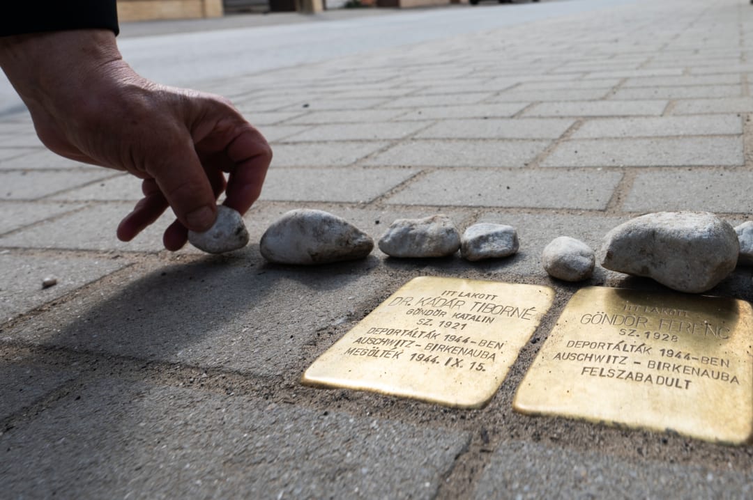 Drivkraften bakom att upprätthålla minnet efter Újfehértós judar, som 1944 deporterades till Auschwitz, heter Margit Szoka. Hon är historielärare med omfattande engagemang för att dokumentera judiskt liv i Újfehértó och dess omgivning. Tidigare har hon översatt min fars bok A-6171, som beskriver hans barndom och hans vistelse i koncentrationslägret Auschwitz. Boken kom ut första gången 1984 och gavs ut i ny upplaga år 2023 av Lind & Co förlag. Under samtalet om översättningen till ungerska diskuterade vi också möjligheten till snubbelstenar utanför Ferenc Göndörs barndomshem. Man kan tycka att en biografi borde räcka för att bevara en människas minne, men tanken på snubbelstenar ledde till ett beslut. Margit Sozka beställde stenar och planerade ett program med en ceremoni för att avtäcka stenarna. Min syster Eva och jag flög till Ungern.