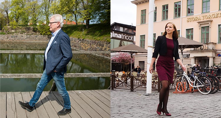 I Linköping försöker kommunalrådet Sara Skyttedal parera kullerstenarna i halvhöga klackar, också på väg till lunch.