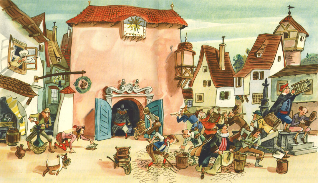 Toppbild. ”Kälkborgare”, illustration Erich Kästner