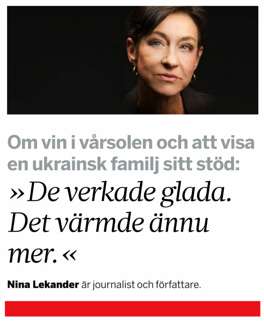 Svårt att skriva om annat än den ryska invasionen av Ukraina. Svårt att tänka på trevligheter eller små bekymmer som läckande kylskåp, mal, mott och ironiskt nog en liten men dock gasläcka i lägenheten. Svårt att känna sig nyttig i vilket avseende som helst. Att demonstrera som vi gjorde häromveckan var nog mer trivsamt – en så kallad godhetssignalering? – än verkningsfullt. Att vi nu vet vad krig heter på ukrainska (viyny) hjälper föga. Pengar till Röda korset och Läkare utan gränser troligen pytte.