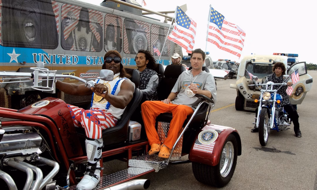 Toppbild. Dwayne Elizondo Mountain Dew Herbert Camacho, Chrippa Lundell och Donald Trump. Foto: 20th Century Fox/TT/AP