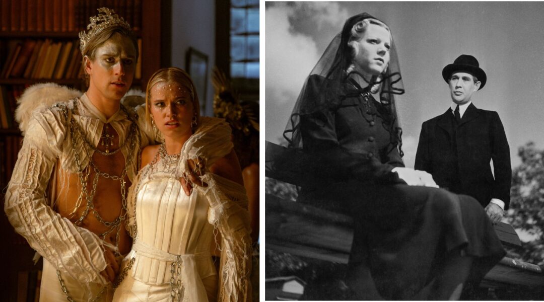 Toppbild: Christian Fandango Sundgren och Thea Sofie Loch Næss i filmen Doktor Glas (2026) och Irma Christenson och Georg Rydeberg i Rune Carlsten film Doktor Glas (1942).