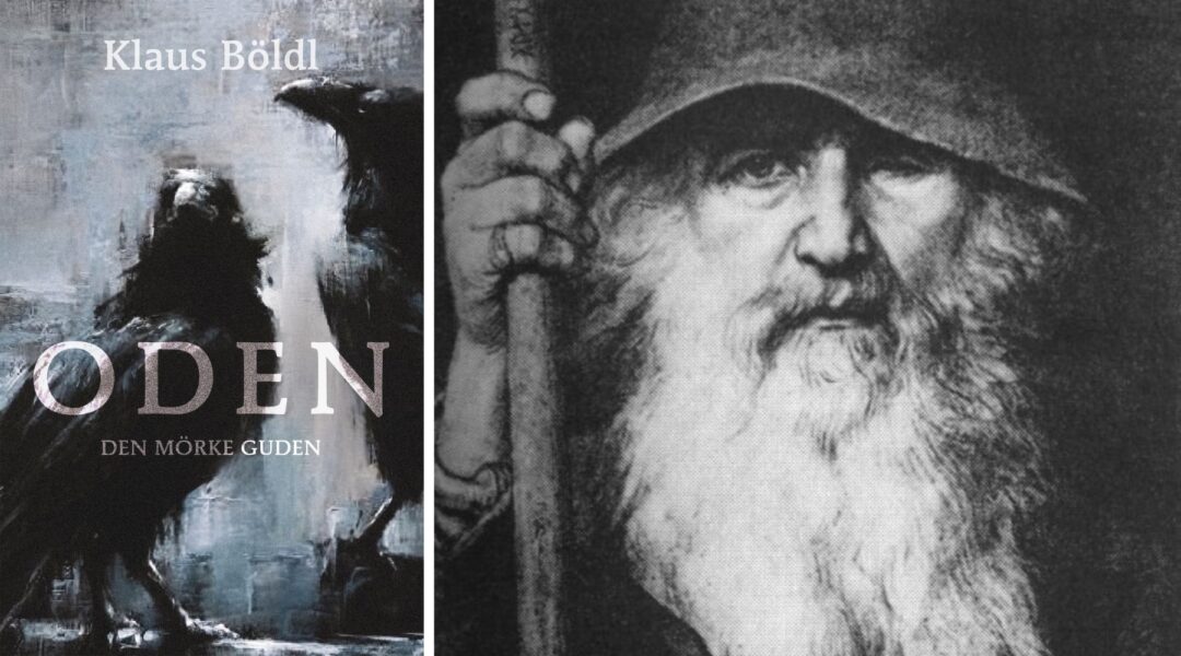 Toppbild. Omslaget till Klaus Böldls bok Oden – Den mörke guden och Georg von Rosens målning Oden som vandrare (1886). Foto: Daidalos/Wikimedia Commons