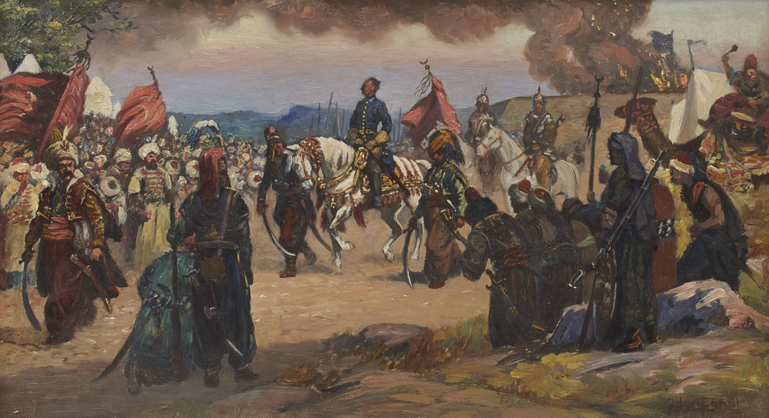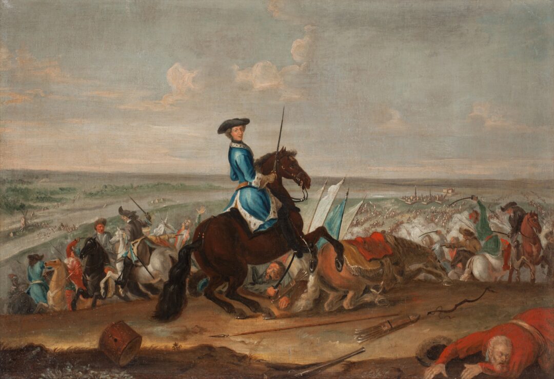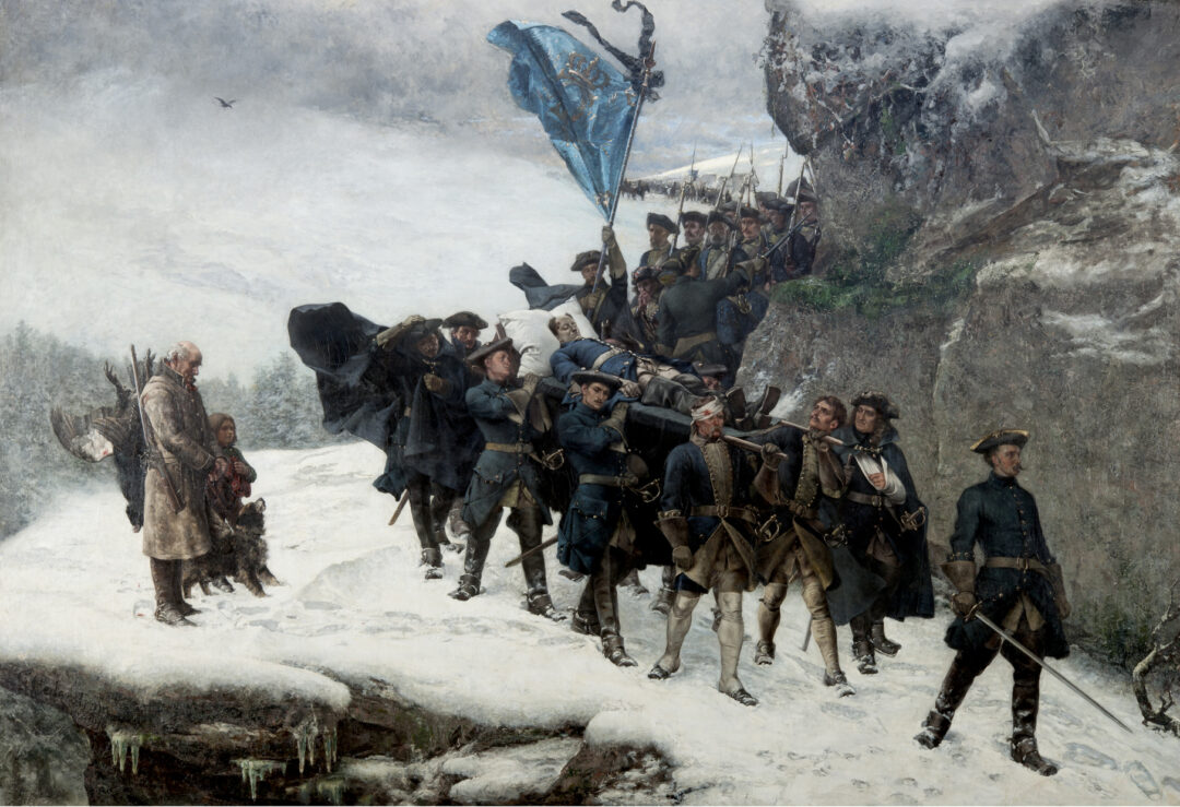 Toppbild: Karl XII uppmanas att sätta sig i säkerhet på andra sidan av Dnepr efter slaget vid Poltava 1709, i Gustaf Cederströms nationalromantiska målning från 1880-talet.