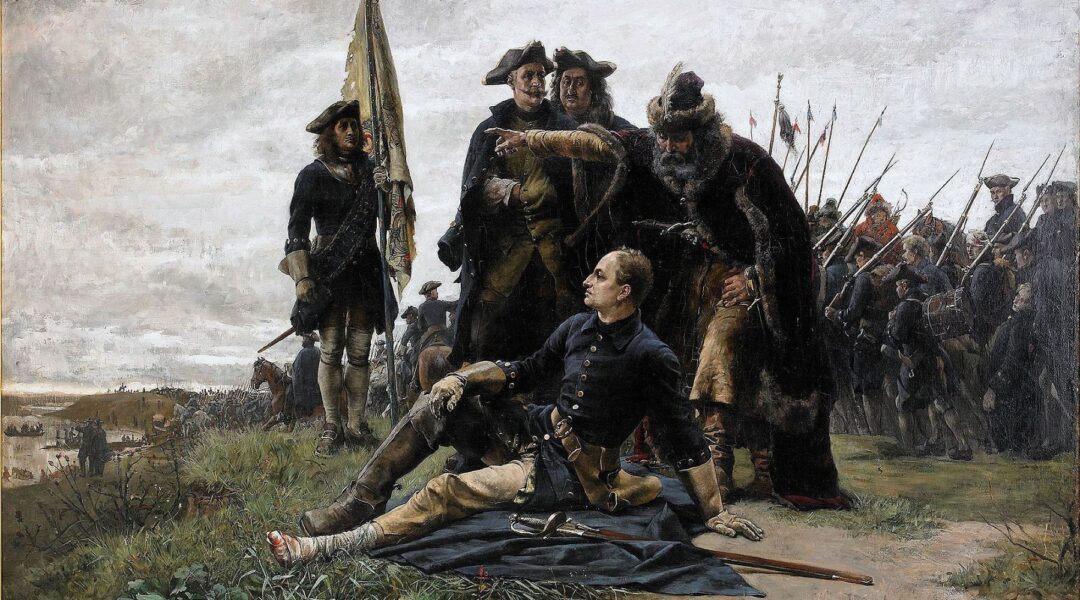 Toppbild: Karl XII uppmanas att sätta sig i säkerhet på andra sidan av Dnepr efter slaget vid Poltava 1709, i Gustaf Cederströms nationalromantiska målning från 1880-talet.