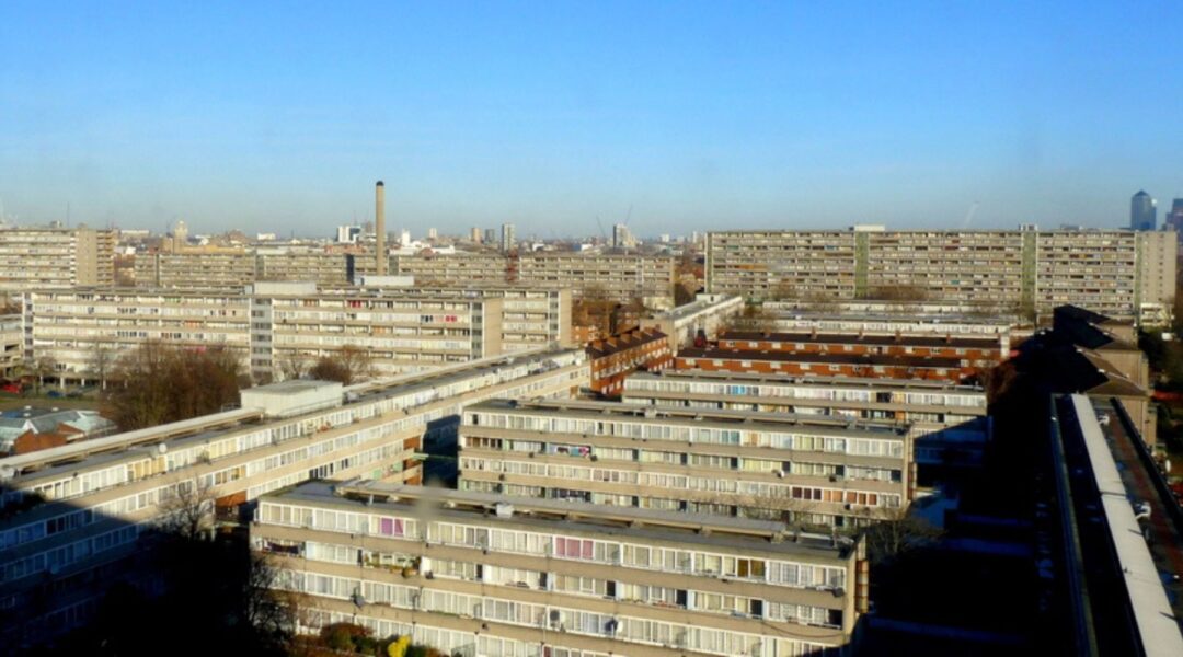 Toppbild. Vy över Aylesburykomplexet i södra London, uppfört under 1960- och 70-talet.