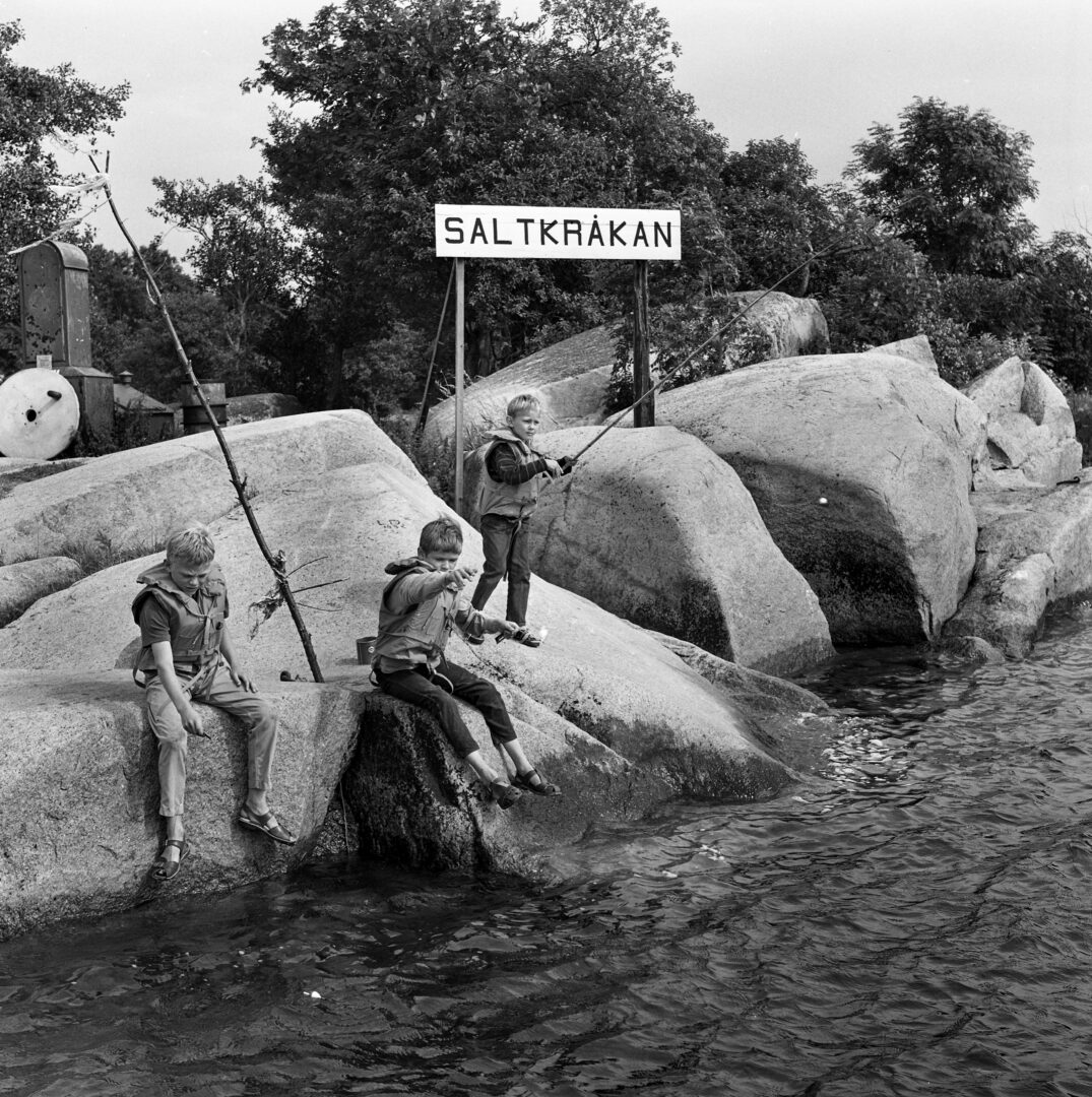 På den lycksaliga skärgårdsön Saltkråkan finns inte en enda tv-ruta att spegla sig i, denna lilla ”livsvärld” domineras av de svenska dygder som utgör den goda gemenskapen. Öborna är självständiga och skötsamma. De är närmast självförsörjande på fisk och potatis. I solidaritet litar de blint på varandra och hjälps åt utan att ställa motkrav. Ekonomin utgörs av en jämlik marknad för det nödvändigaste, man hämtar sin mjölk hos bonden och köper färg och verktygen i handelsboden som tillhandahåller öns enda telefon och postkontor. På Saltkråkan förhäver man sig inte, man nöjer sig med och förvaltar det man har. Fjärran var socialdemokratins högskattesamhälle, miljonprogram och klåfingriga byråkrater.