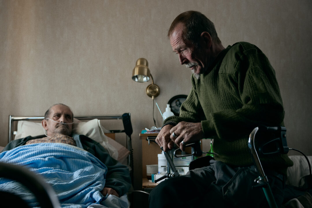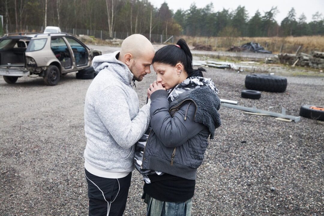 Utslagna människor söker stöd och tröst hos varandra i Peter Grönlunds film Tjuvheder (2015). Foto: Nadja Hallström/Svenska Filminstitutet