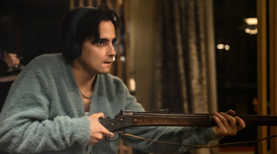 Toppbild. Nikola Borggård Gavanozov bär geväret från Måsen i nya Rage på Dramaten. Foto: Sören Vilks