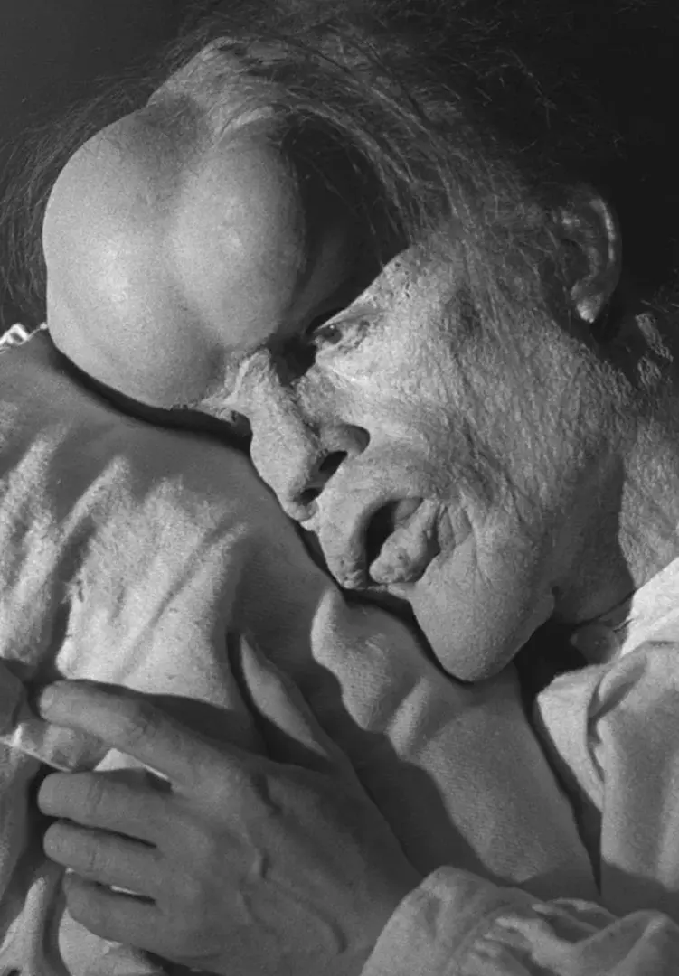Han var född med grava missbildningar, förhårdnade utväxter som påminner om elefanthud. Merrick blir också föremål för vetenskapliga studier och Lynch ställer oss frågor kring vad som egentligen är mänskligt och inte minst vad som skiljer människan från djuren.