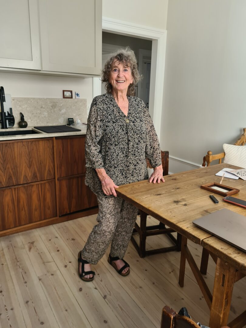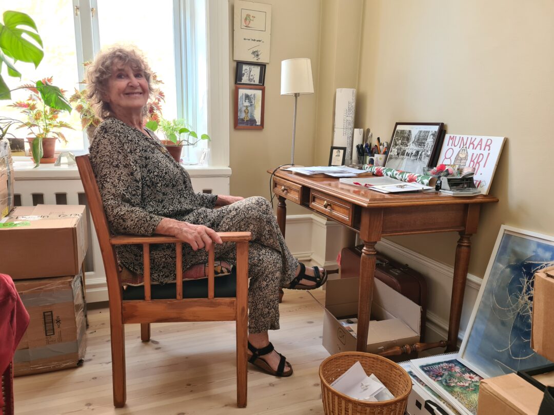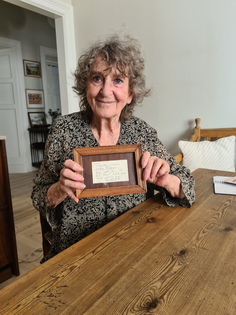 – I dag kan inte ungarna skriva – de behöver inte, det är inte klokt! säger hon och berättar hur hon visar barnbarnen gamla skrivstilar.
