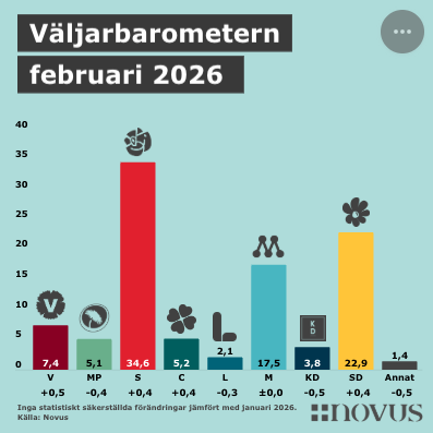 För Liberalerna bekräftar februarimätningen den dystra trenden. 2,1 procent är den lägsta nivå som Novus har uppmätt för partiet på fyra år. Senast det hände var i april 2022 då Nyamko Sabuni slutade, innan efterträdaren Johan Pehrson hunnit vända trenden. Partiet gjorde reklamkampanj som betonade kontinuitet, där Johan Pehrson stod i näbbstövlar och sa ”jag har varit för kärnkraft sen de här var moderna.”