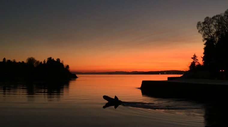 Det kvällas. Solen är på väg ner. Hänger extra stor och tung och djupt röd strax ovan mörkret. Känns det som.