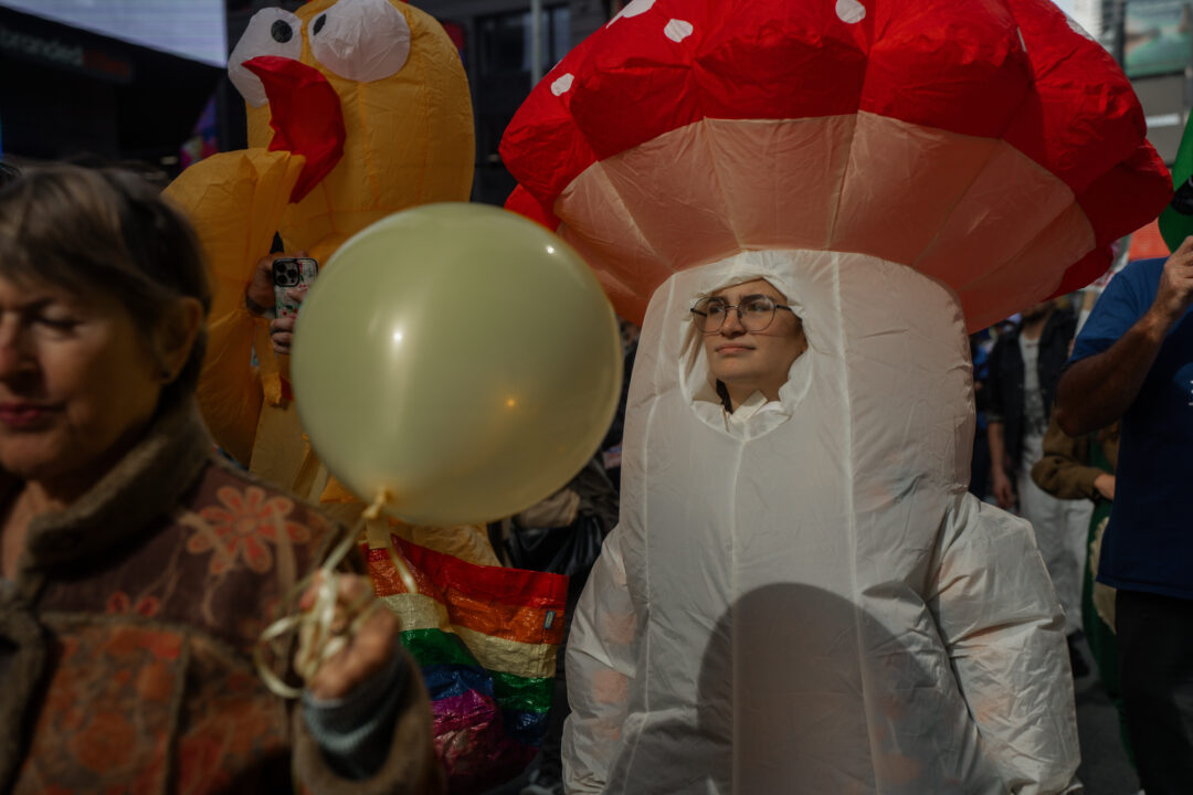Lekfullhet och karnevalskostymer, många grodor, möss, kycklingar, höns, pingviner, kor, enhörningar, Nalle Puh och Pokémon-figuren Pikachu. I Los Angeles seglade den jättelika uppblåsta Trumpbabyn över massorna. I Washington Ukrainaflaggor och Palestinaflaggor. Plakat: ”Elect a clown Expect a circus”, ”I’m protesting while it’s still legal”, ”Give me your tired not your tyrants”.