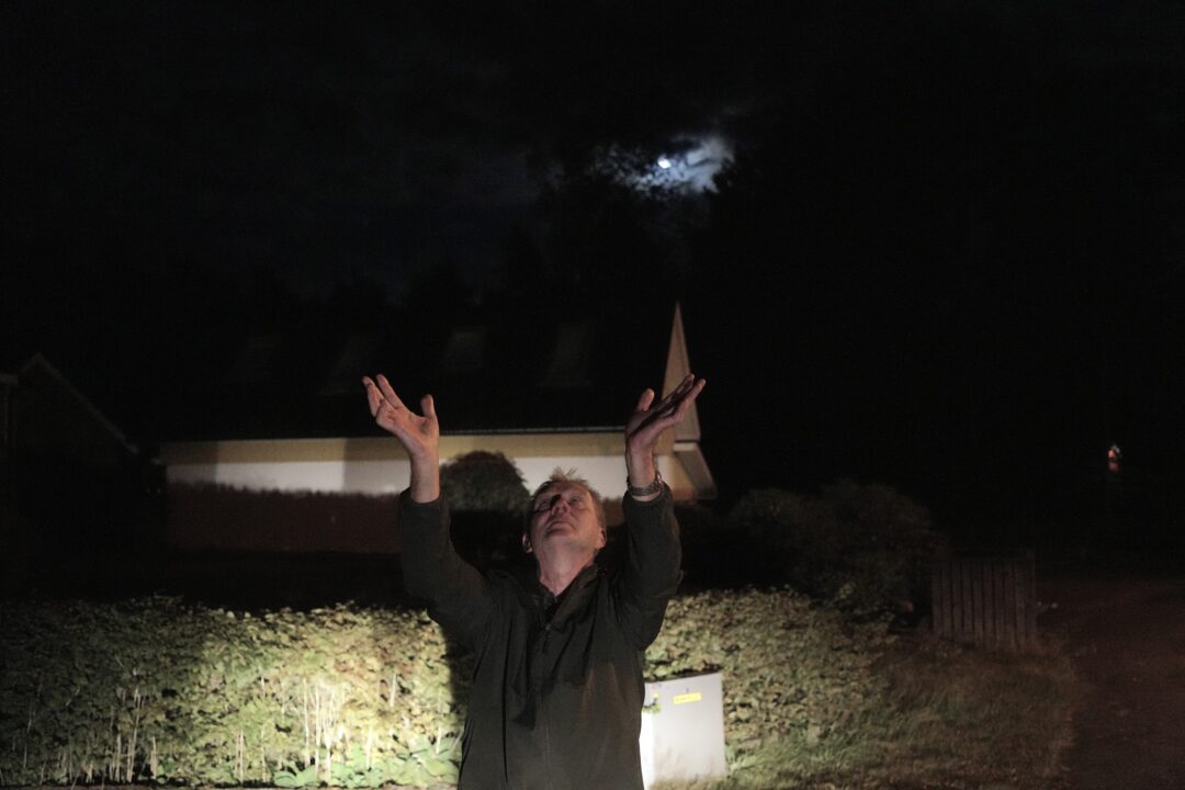 – Kanske femton meter upp i luften och den skickar ut alla de där ljusen i hela skogen så att allting blinkar. Min sambo blev rädd och sa ”Kör! Kör för i helvete!” så det gjorde jag.